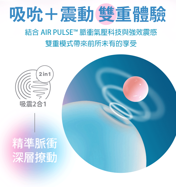 吸震 2 合 1|吸吮+震動雙重體驗,感受加倍,驚喜不斷。
